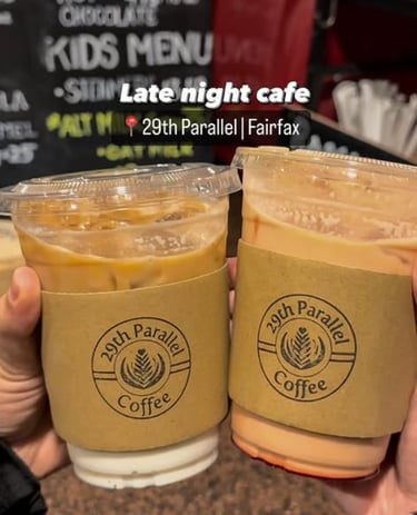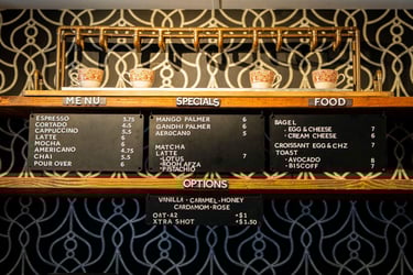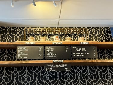 All your hot or iced coffee beverages including lattes, drip coffee, pour overs, americanos and cortados